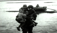 OVERSTROMING Weekjournaal van Polygoon Hollands Nieuws van week 4 uit 1936. Beelden van de wateroverlast in Limburg die veroorzaakt wordt door het buiten de oevers treden van de rivieren. SHOTS: sleepboot vaart voorbij op rivier; twee shots vrachtauto: rijdt voorbij met wielen half in het water; wordt vanuit binnenvaartschip geladen door arbeiders; demonstratie van de manier waarop vervoer van mensen plaatsvindt oa over ondergelopen land: per roeiboot.