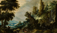 Berglandschap met waterval -