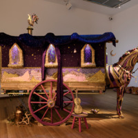 kar, wagen, paard, eenhoorn, mystiek, sprookje, sprookjesachtig, magisch, goud, paars, roze, wiel, ramen, glas-in-lood, gordijnen, doek, glitter, ster, maan, sterrenhemel, hemel, nachtlucht, houten vloer, museum, expositie, kunst, sculptuur, decoratie, details, artistiek, creatief, fantasie, middeleeuws, droomachtig, verbeelding, koets, ramen met licht, sprookjesfiguur, magische sfeer, decor, stoel, viool, muziekinstrument, koper, theepot, bankje, bloemen, paardentuig, geborduurd, hangende doek, paard met hoorn, gouden accenten, feeëriek, symbolisch, romantisch, mythisch, nostalgisch, extravagant, uitgesproken kleuren, sprankelend, betoverend, antiek, detailrijk, handgemaakt, tapijt, gordijn, venster, opzichtige decoraties, barok, victorian, rijkelijk versierd, stoffig, retro, caleidoscopisch, surrealistisch, sierlijk, creativiteit, fantasiewereld, mythisch wezen, verhalen, episch, oudheid, epische scene, wonderlijk, unieke kunstvorm, excentriek, verbeeldingskracht, luxueus, grandeur, imposant, gouden draak, nachtwacht, houten koets, gewoven tapijt, kristallen ramen, kleurenspel, stoffen doeken, verhaalvertelling, figuurlijk, verlichting, historische invloeden, theatrale opzet, sierpaard, middeleeuws verhaal, antieke invloeden, tovenaar, magiër, sieraden, juwelen, armband, stofgordijnen, antieke uitstraling, koninklijk, majestueus, literaire verwijzing, folklore, fabel, legende, illusie, surrealiteit, schaduwspel, uitbundig, overdreven, kunstinstallatie, unicorn, eenhoornbeeld, symboliek, universeel, mystiek wezen, fantasieverhalen, paardachtige, kleurrijk, geweven details, paardenhoorn, mythologie, epische vertelling, fabelachtig, sprookjesachtige elementen, theatrale effecten, glinsterend, knallende kleuren, artistieke uiting, houten wielen, gereedschap, sieraden, vioolspeler, instrumentaal, artiestenwerk, expositie ruimte, galerie, verlicht raam, muurschildering, purper, goudkleurig, prachtig weergegeven, museumstuk, klassieke kunst, gouden kroon, sierlijke gordijnen, gouden decoratie, kroon op dak, regenbooglicht, paardenbeeld, majestueus paard, culturele invloeden, oosters tapijt, geborduurde stoffen, paardenstaart, magische wereld, art deco, bohemian stijl, fantasy, sprookjesfiguren, antieke wagen, gouden wagen, betoverde wagen, ridderverhalen, heldhaftig, nostalgische setting, decoratieve stijl, renaissancetijd, karakters, kinderboek, illustratie, eenhoorn thema, magische koets, kleurenspel, klassieke wagen, sierlijk paardentuig, feeërieke kleuren, luxe materialen, prachtige gordijnen, gouden hoorn, stoffen accessoires, roze wielen, feeënland, fantasiewereld, houtbewerking, prachtig paard, betoverde wereld, magie, houten details, oude wereld, gouden ornamenten, verlichtingseffecten, schitterend, epische kunst, cultuur, eenhoornhoorn, illusie van licht, stralend, betoverend paard.