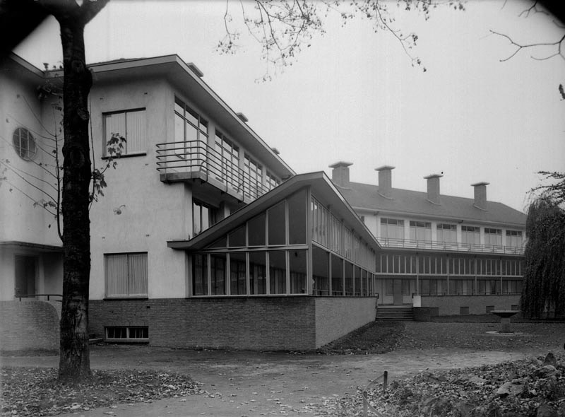 Sint Lidwina ziekenhuis van "de Beyart". De ingrijpendste uitwendige wijzigingen in het eigenlijke Beyart-complex bestonden voor de Tweede Wereldoorlog in het zetten van een zogenaamde tussenbouw en een bijbouw, beide uit 1923, en van een ziekenafdeling met lighal (1937), soms geroemd als de beste schepping van architect Boosten sr. Het Zuiden: 54193, 13x18 cm.