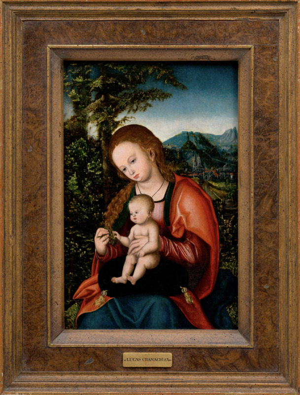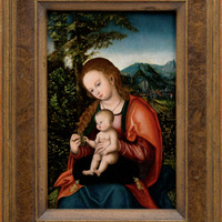1003465, Lucas Cranach de Oude, Maria met kind, ca. 1516, Collectie Bonnefanten, dit kunstwerk behoort tot de Nederlands Kunstbezit-collectie (NK-collectie). Deze collectie bestaat uit kunstobjecten die na de Tweede Wereldoorlog door de geallieerden zijn teruggehaald uit Duitsland en nadien onder beheer zijn gekomen van de Nederlandse Staat. De collectie bevat objecten die mogelijk tussen 1933 en 1945 zijn geroofd, geconfisqueerd of onder dwang verkocht. Meer informatie is te vinden op wo2.collectienederland.nl of via de QR-code. Indien u informatie heeft over dit kunstwerk kunt u contact opnemen met restitutie@cultureelerfgoed.nl. Dit helpt mogelijk in onze zoektocht naar de rechtmatige eigenaar. Fotograaf: Peter Cox