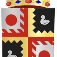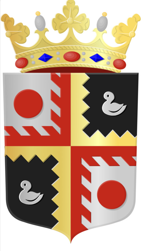 schild, wapenschild, kroon, goud, edelstenen, rode stenen, blauwe stenen, witte eend, zwarte achtergrond, rode vormen, gele vormen, cirkel, halve cirkel, versiering, symmetrie, heraldisch, traditie, wapenkunde, kasteel, adel, geschiedenis, zegel, zilver, vier vakken, gouden rand, zigzagpatroon, rood-wit patroon, heraldiek, veld, wapen, symbolen, elegantie, koninklijk, prestigieus, schildhouder, zegelring, eervolle, edel, familiewapen, kunst, glans, gestileerd, middeleeuws, oud, rijkdom, embleem, ridderlijk, klassiek, verfijnd, contrast, vakverdeling, zwart-wit, geometrisch, afbeelding, eenvoudig, verfijning, ronding, patroon, herhaald, strakke lijnen, gedetailleerd, decoratie, verfijnde kroon, kroning, symbool, belangrijk, wapendrager, glanzend, verzilvering, eend, sierlijk, ronding, heraldisch symbool, geometrie, eenvoudige lijnen, versiering, goudkleur, adellijk, adelstand, zegelbeeld, schildvorm, rond symbool, embleem, complex, balans, evenwichtig, wapenbord, schildverdeling, kwartieren, contrasterend, licht, schaduw, ontwerp, kunstzinnig, pronk, heldere kleuren, grafisch, wapenherkenning, sierlijke kroon, edelsmid, wapensmid, glimmend, gracieus, helderrood, heldergoud, wapenverhaal, illustratief, ceremonieel, decoratief, schildpad, bovenkant, wapenkunst, heraldische kroon, wapenveld, schatkamer, sierlijke vormen, symboliek, vakmanschap, cultureel, lijnen, tweekleurig, wapenkundig