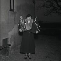 "Glasnegatief. Venlo. Valuastentoonstelling. Omdat de kledij van de stadsreuzen, Valuas en zijn vrouw, versleten was organiseerde het Akkermansgilde in 1935 een tentoonstelling, die op 26 januari 1935 werd geopend. De bevolking werd opgeroepen om kleding te ontwerpen. De respons was groot.