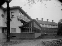 Maastricht. Brusselsestraat 38. Sint Lidwina ziekenhuis van "de Beyart". De ingrijpendste uitwendige wijzigingen in het eigenlijke Beyart-complex bestonden voor de Tweede Wereldoorlog in het zetten van een zogenaamde tussenbouw en een bijbouw, beide uit 1923, en van een ziekenafdeling met lighal (1937), soms geroemd als de beste schepping van architect Boosten sr. Het Zuiden: 54193, 13x18 cm.