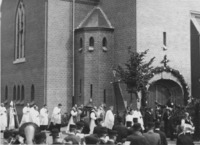 Consecratie vooroorlogse kerk Melderslo De consecratie van de vooroorlogse kerk van Melderslo, vlak na de verbouwing van 1932-1933.