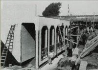 Dit is de spoorbrug te Simpelveld bij het oranjeplein onder het spoor door richting Nijswiller. Op deze foto Een van de landhoofden is ontkist en de beton wordt afgewerkt.