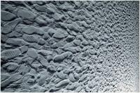 Carl Andre Kleurenfoto; kunstwerk met voetstappen in het zand; werk van Carl Andre.